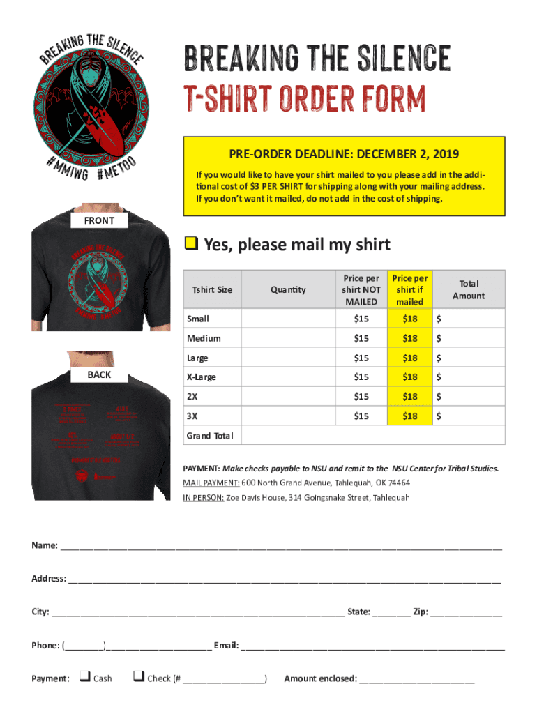 BEING THE SILENT A E R#MMI G # METOObreaking the silence shirt ORDER Form PREORDER DEADLINE: DECEMBER 2, 2019, If you would like to have your shirt mailed to you please add in the additional cost