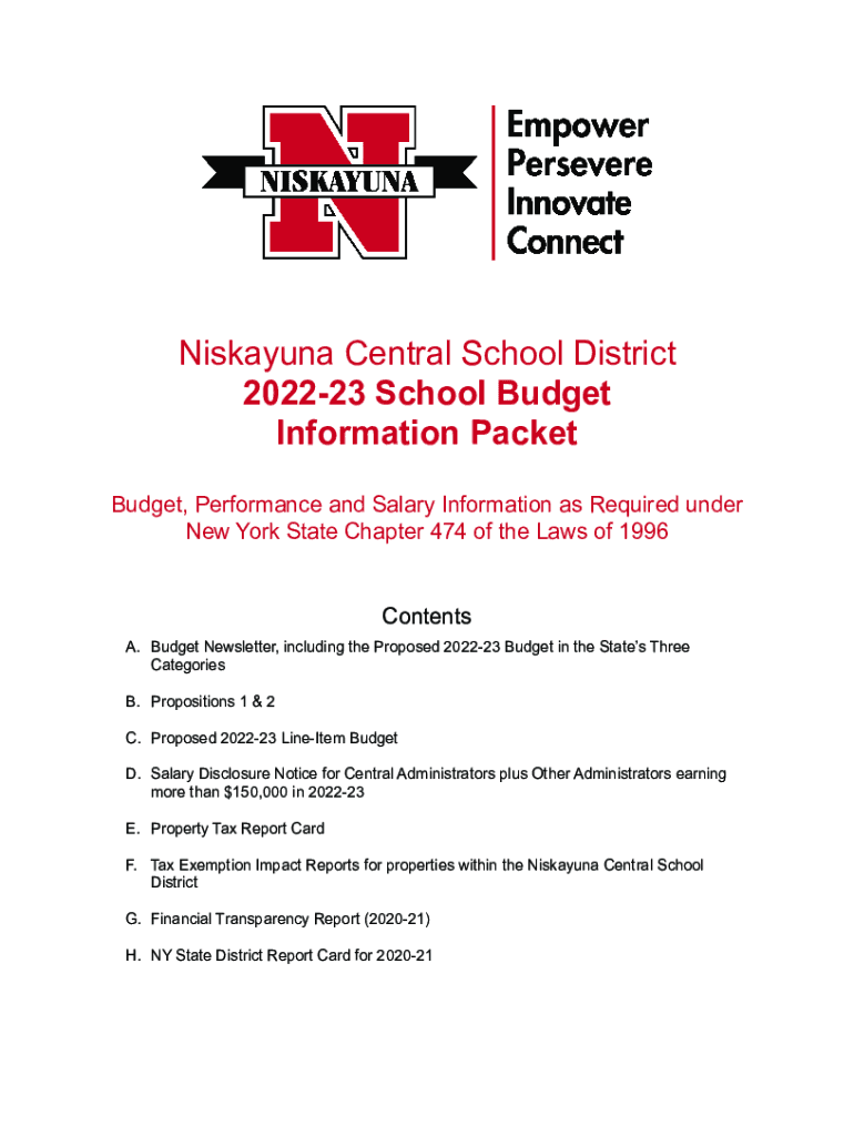 Niskayuna Central School District 202223 School Budget Information Packet Budget, Performance and Salary Information as Required under New York State Chapter 474 of the Laws of 1996Contents A. Budget