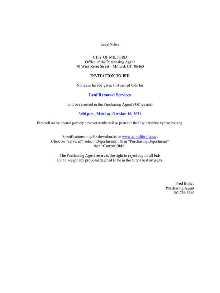 Get the free City of Milford, CT PURCHASING DEPARTMENT BIDDING ...