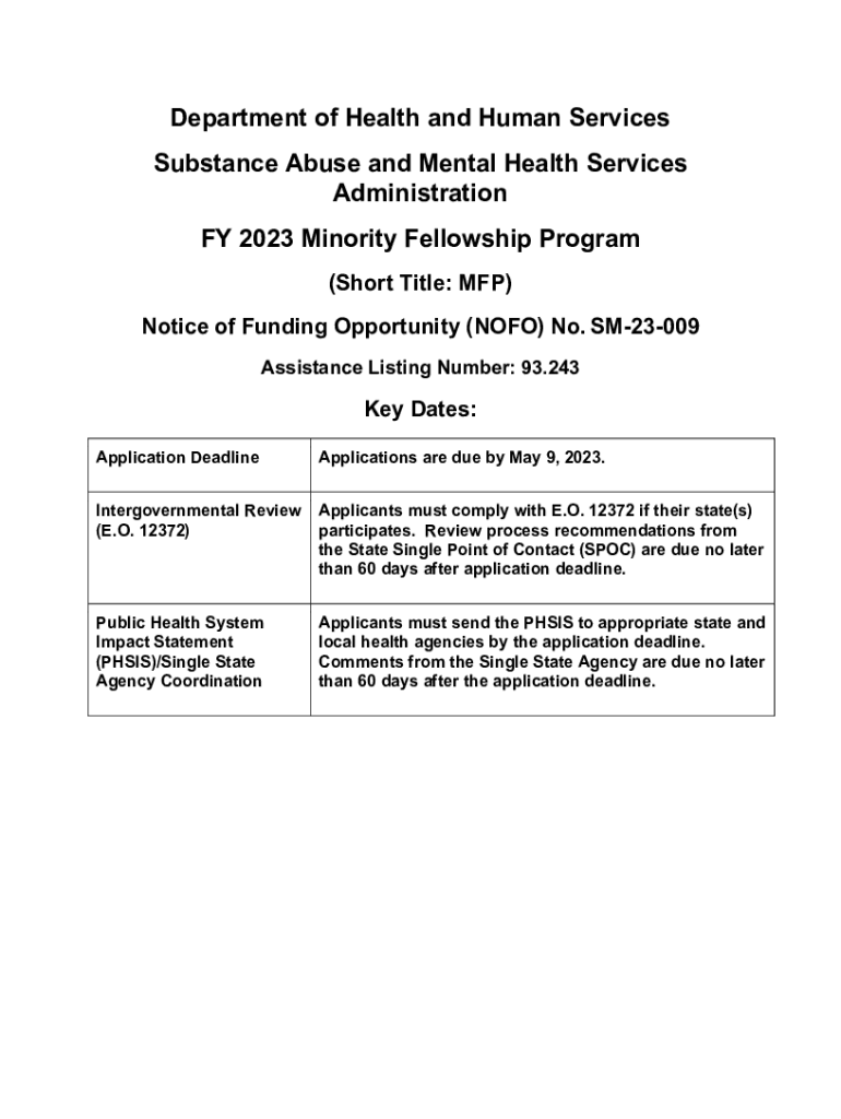 Department of Health and Human Services Substance Abuse and Mental Health Services Administration FY 2023 Minority Fellowship Program (Short Title: MFP) Notice of Funding Opportunity (NO FO) No. SM23009