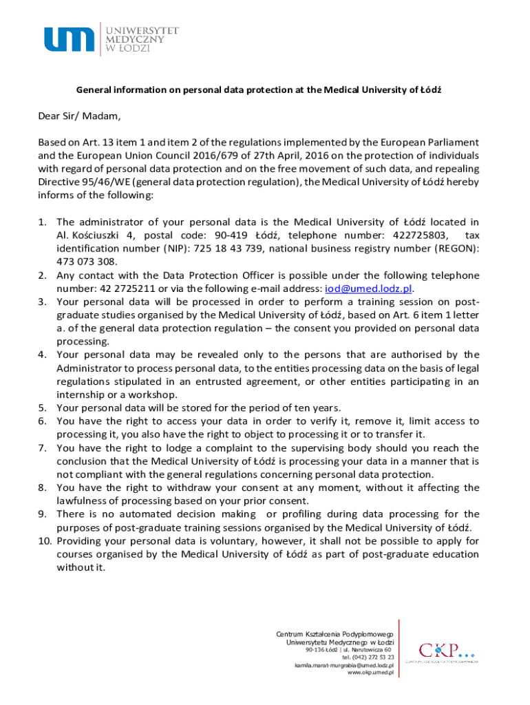 Get the free General information on personal data protection at the ...