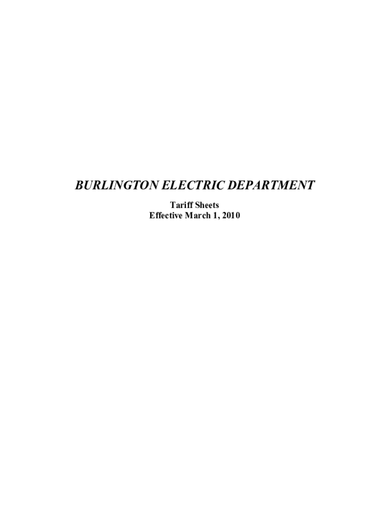 BURLINGTON ELECTRIC DEPARTMENT Tariff Sheets Effective March 1, 2010TABLE OF CONTENTS RESIDENTIAL SERVICE (RS) RATE .....................................................................................