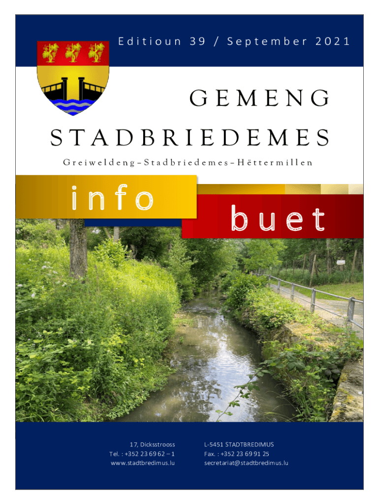 Edition 39 / September 2021GEMENG STADBRIEDEMES GreiweldengStadbriedemesHttermilleninfo17, Dicksstrooss Tel. +352 23 69 62 1 www.stadtbredimus.lubuetL5451 STADTBREDIMUS Fax. +352 23 69 91 25 secretariat@stadtbredimus.luSITZUNGSBERICHTE