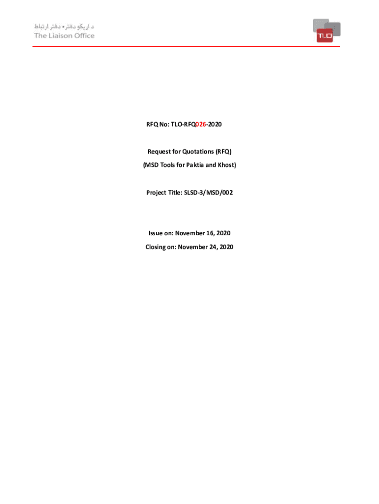 RFQ No: TLORFQ0262020Request for Quotations (RFQ) (MSD Tools for Partial and Host)Project Title: SLSD3/MSD/002Issue on: November 16, 2020, Closing on: November 24, 2020Introduction: The Liaison Office