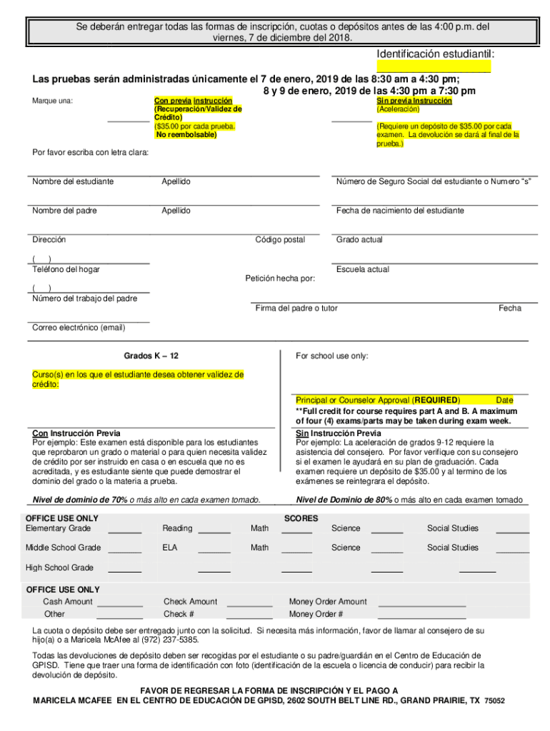 Se Webern entreat today leis format DE inscription, quotas o deposits antes DE leis 4:00 p.m. Del earned, 7 de December Del 2018. Identification estudiantil: ___ Las rumbas seen administrates ligament