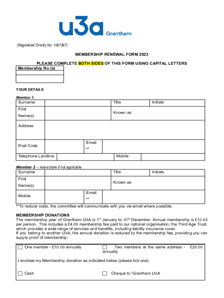 Get the free Grantham U3A Renewal Form 2023