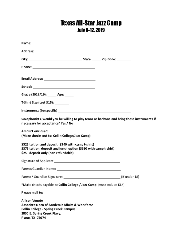 Get the free Jazz Camp Application Form 2019.pages - Collin College