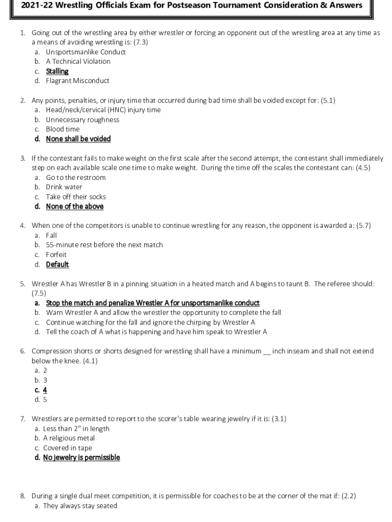 202122 Wrestling Officials Exam for Postseason Tournament Consideration & Answers 1. Going out of the wrestling area by either wrestler or forcing an opponent out of the wrestling area at any time