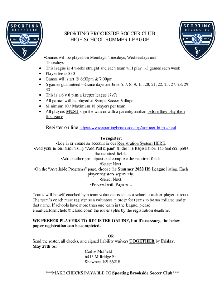 Fill out your sporting brookside soccer club online with pdfFiller!