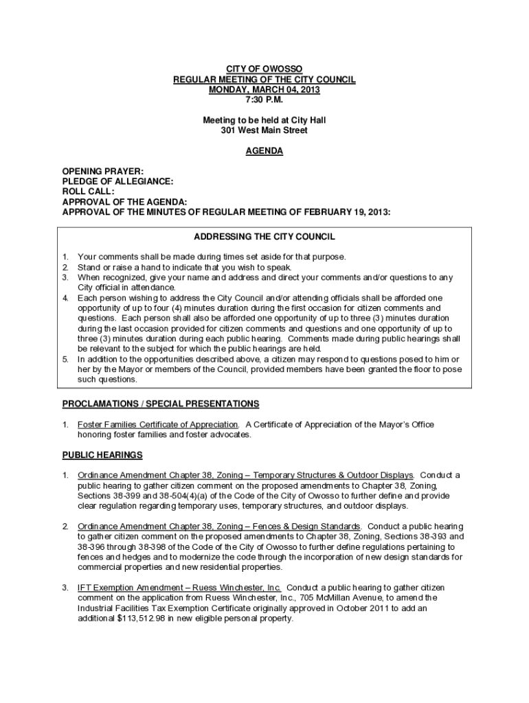 Get the free owosso city council