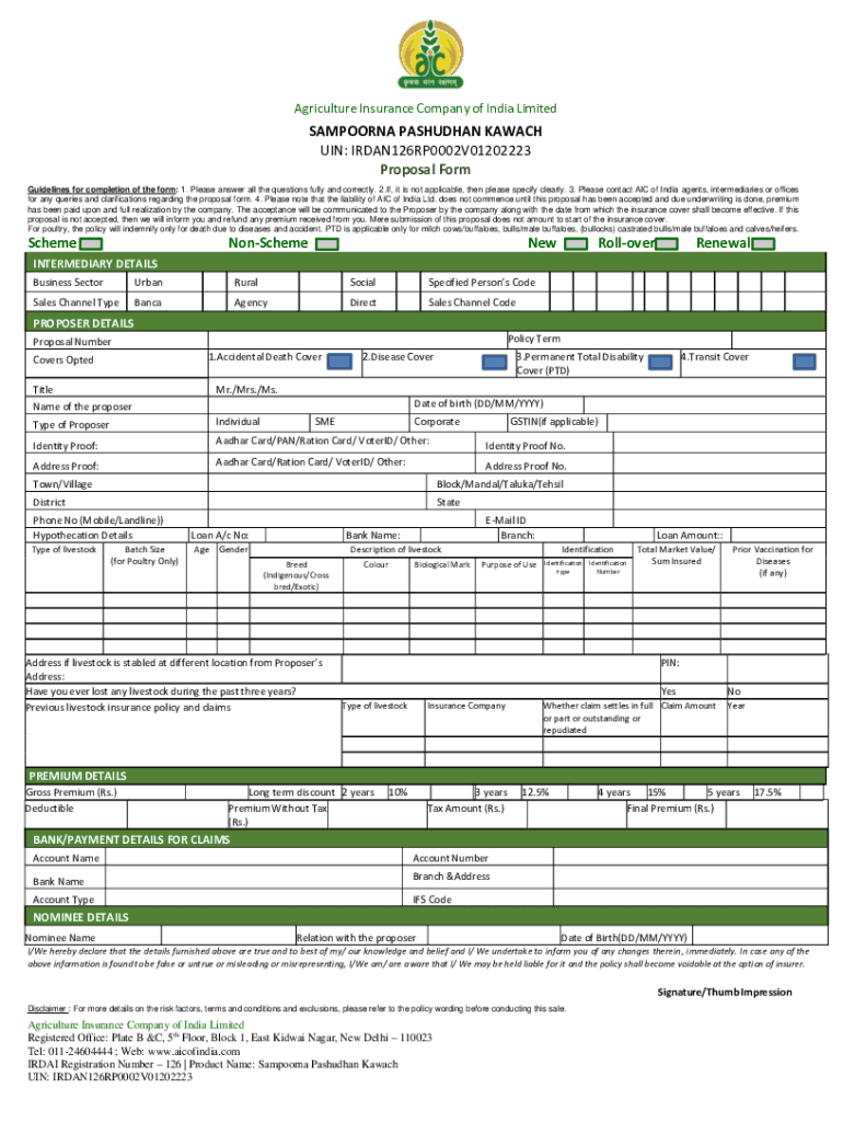 Agriculture Insurance Company of India LimitedSAMPOORNA PASHUDHAN KARACHI