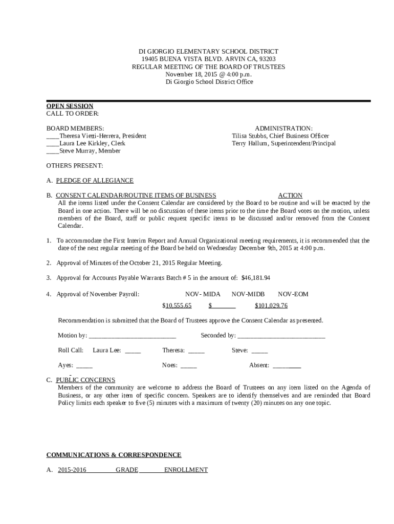 The annual accounting of development fees for fiscal year 2014-2015 - digiorgio k12 ca is a document you can get filled-out and signed for certain needs. In that case, it is provided to the relevant addressee to provide some info of certain kinds. The completion and signing can be done manually or with a suitable tool e. g. PDFfiller. Such applications help to submit any PDF or Word file online. It also lets you edit it for your requirements and put legit digital signature. Once done, the user ought to send the annual accounting of development fees for fiscal year 2014-2015 - digiorgio k12 ca to the respective recipient or several recipients by email or fax. PDFfiller has a feature and options that make your document of MS Word extension printable. It includes a number of settings for printing out. It does no matter how you'll file a form - in hard copy or electronically - it will always look neat and firm. To not to create a new editable template from the beginning again and again, make the original Word file as a template. After that, you will have a customizable sample.