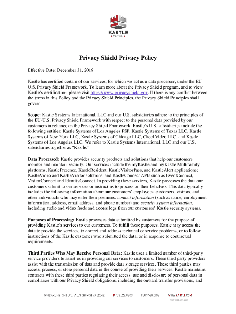 Privacy Shield Privacy Policy Effective Date: December 31, 2018, Castle has certified certain of our services, for which we act as a data processor, under the EU. S. Privacy Shield Framework. To learn