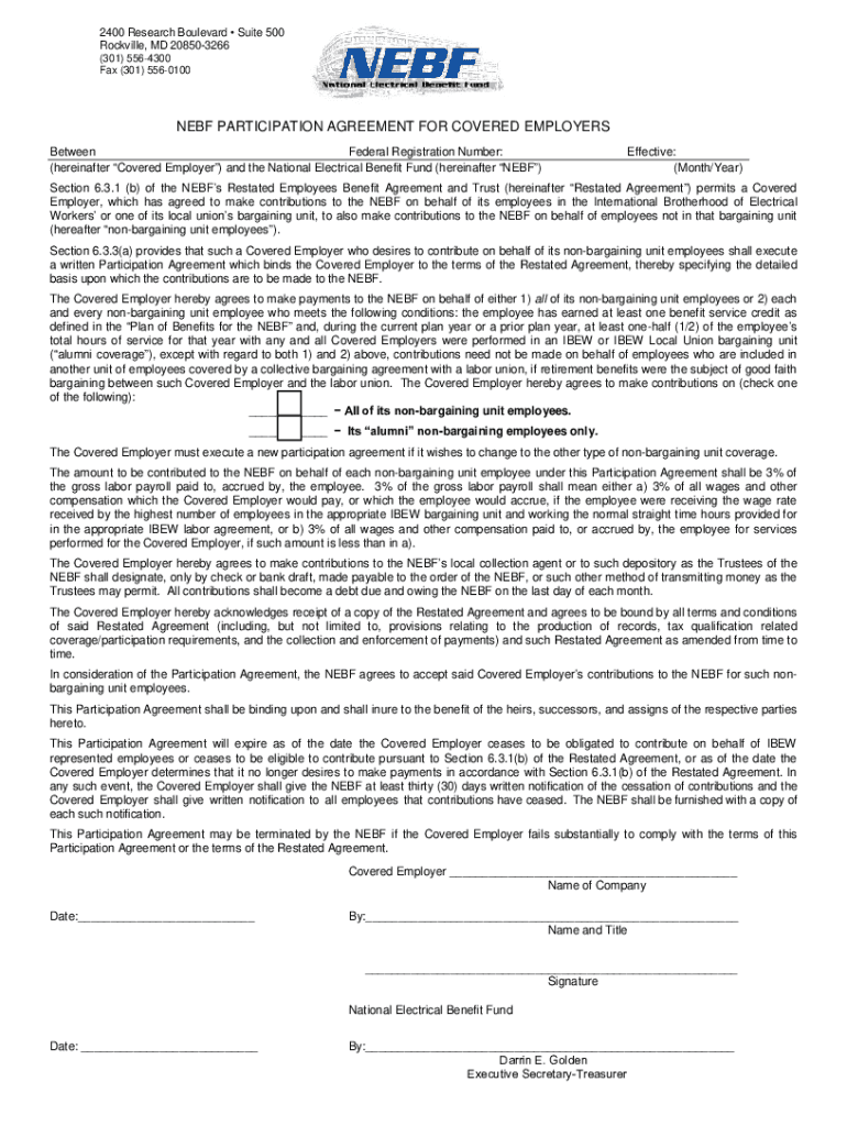 Participation Agreement Instructions Complete the Participation Agreements (2 copies). Select the type of Participation Agreement you wish to enter into (either All Alumni). Have an authorized representative