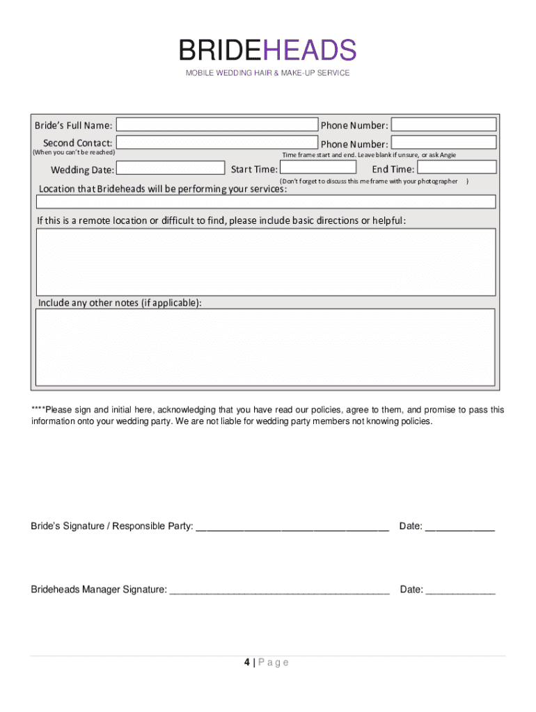 Fill out your brideheads - mobile wedding online with pdfFiller!