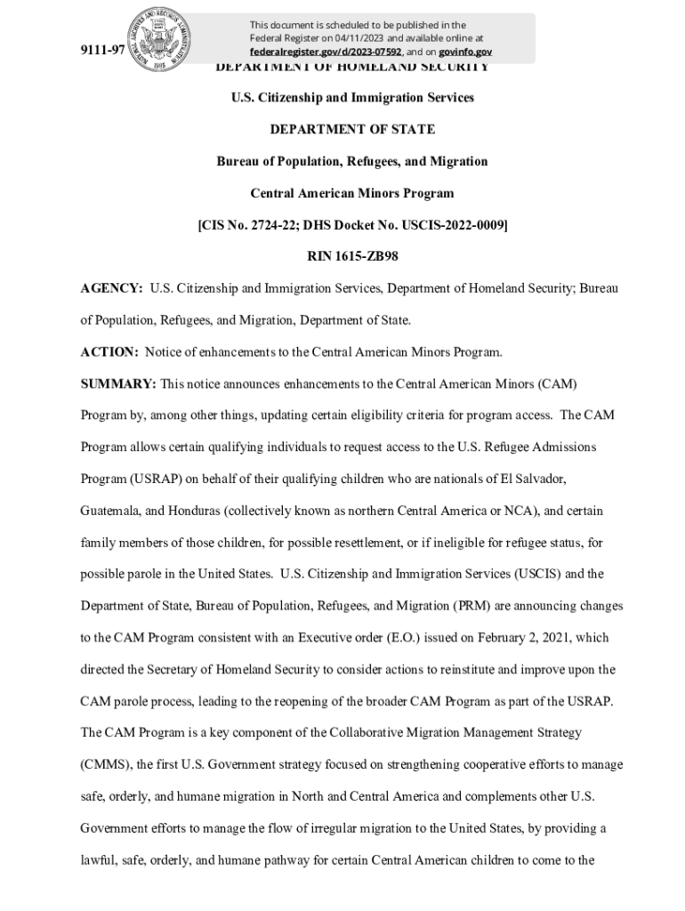 Get the free Bureau of Population, Refugees, and Migration; Central ...