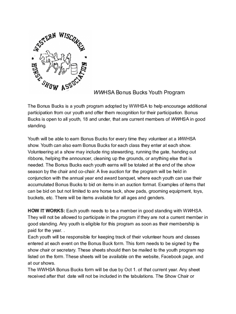 WW HSA Bonus Bucks Youth Program The Bonus Bucks is a youth program adopted by WW HSA to help encourage additional participation from our youth and offer them recognition for their participation.