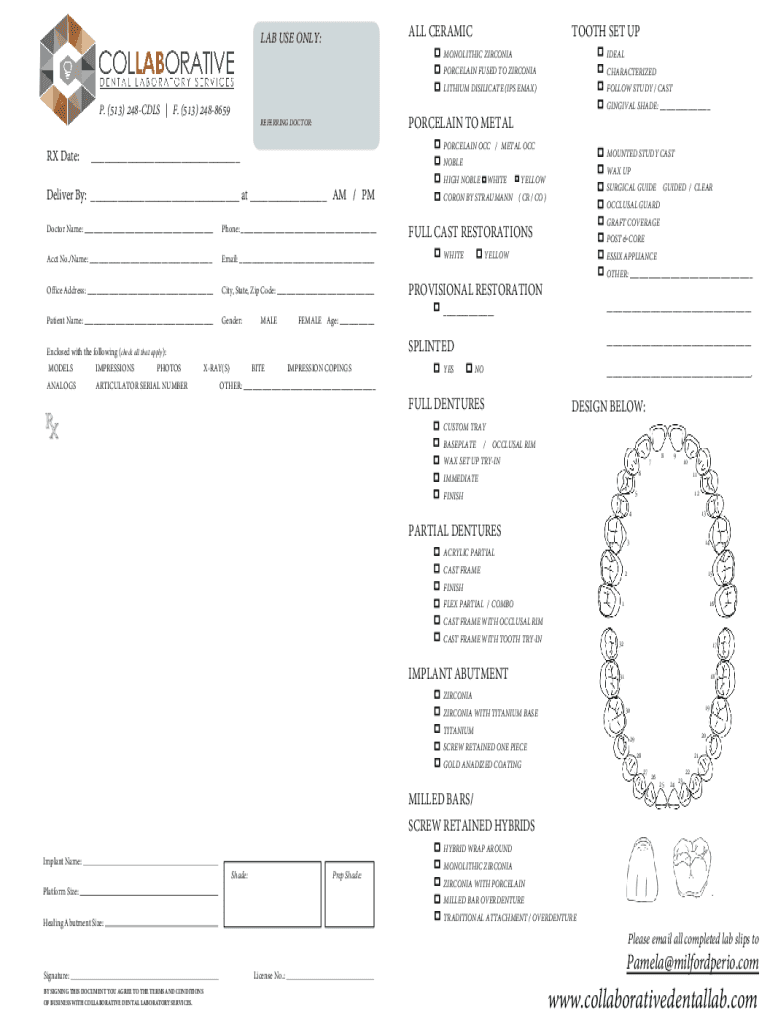 ALL CERAMIC USE ONLY:P. (513) 248CDLS | F. (513) 2488659RX Date:___Deliver By: ___ at ___ AM / PM