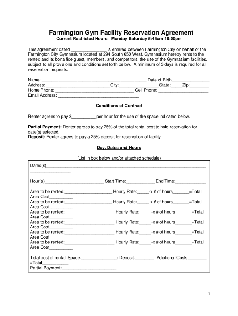Get the free Farmington Gym Facility Reservation Agreement