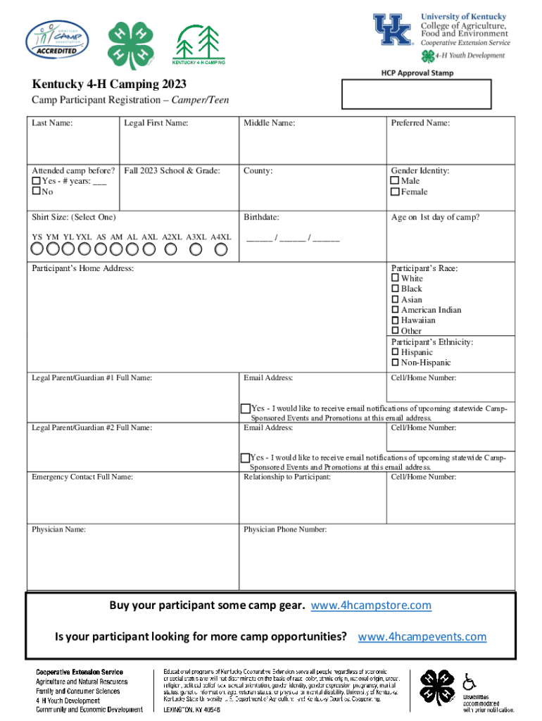 Camp Information Who Can Attend: Boys and Girls who have completed 3rd grade to age 14Place: North Central 4H Camp Carlisle, KY. We will meet at the Anderson County Extension Office and bus to camp.