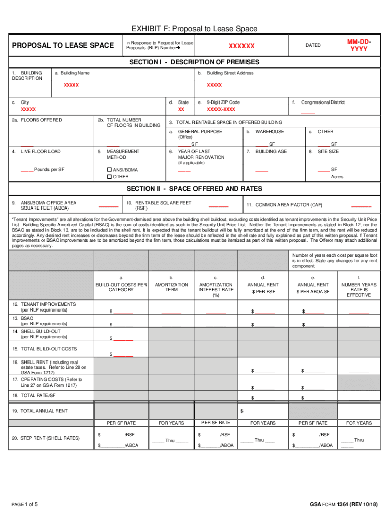 EXHIBIT F: Proposal to Lease Space In Response to Request for Lease Proposals (RAP) NumberPROPOSAL TO LEASE SPACEMMDDYYYYDATEDXXXXXXSECTION I DESCRIPTION OF PREMISES 1. BUILDING Description. Building