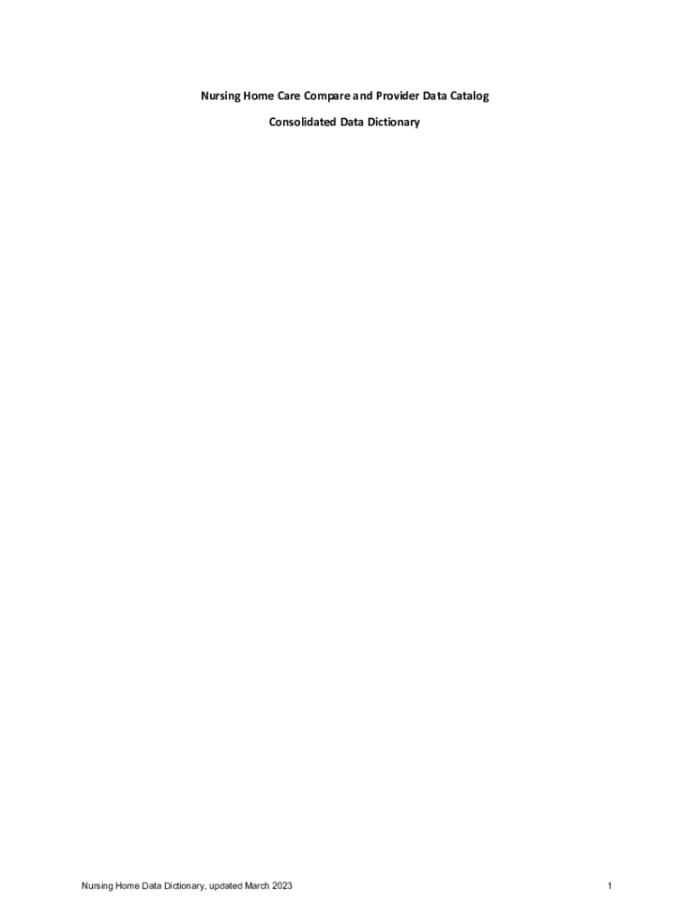 Nursing Home Care Compare and Provider Data Catalog Consolidated Data DictionaryNursing Home Data Dictionary, updated March 20231Table of Contents Introduction3Note regarding Leading Zeros in Excel3Table