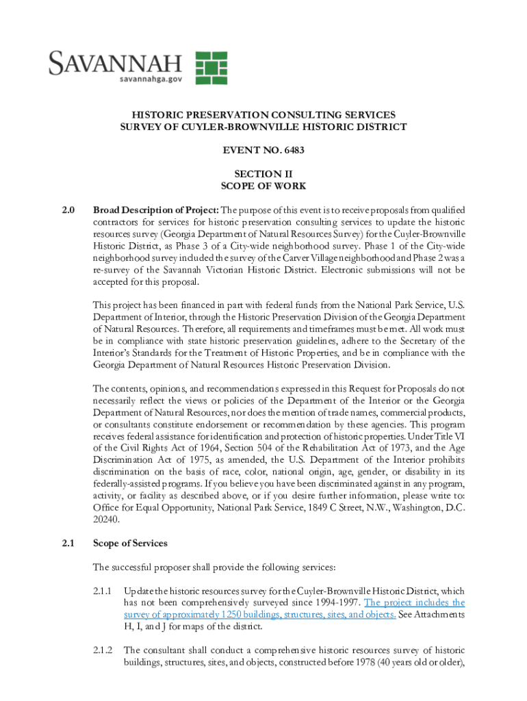 HISTORIC PRESERVATION CONSULTING SERVICES SURVEY OF CUYLERBROWNVILLE HISTORIC DISTRICT EVENT NO. 6483 SECTION II SCOPE OF WORK 2.0Broad Description of Project: The purpose of this event is to receive