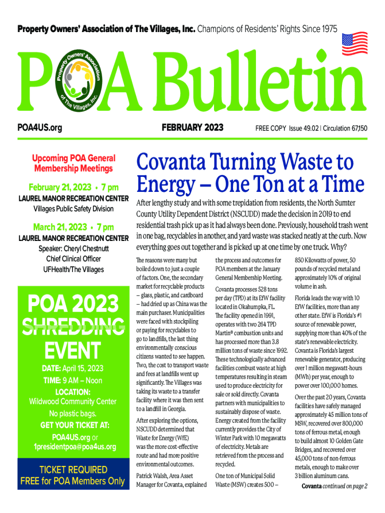 Property Owners Association of The Villages, Inc. Champions of Residents Rights Since 1975POA4US.org Upcoming POA General Membership Meetings February 21, 2023 7 Laurel MANOR RECREATION CENTER Villages