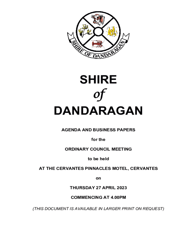 SHIRE ofDANDARAGAN AGENDA AND BUSINESS PAPERS for the ORDINARY COUNCIL MEETING to be held AT THE CERVANTES PINNACLES MOTEL, CERVANTES on THURSDAY 27 APRIL 2023 COMMENCING AT 4.00PM (THIS DOCUMENT