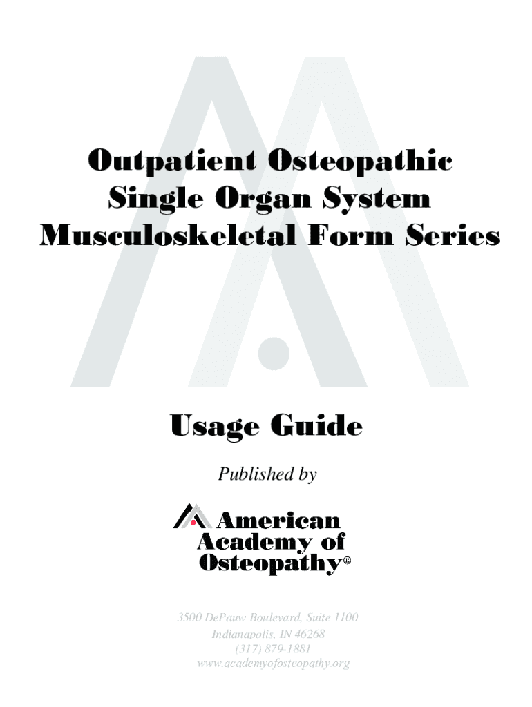 Outpatient Osteopathic Single Organ System Musculoskeletal Form SeriesUsage Guide Published by3500 DePaul Boulevard, Suite 100 Indianapolis, IN 46268 (317)8791881 www.DFDGHPRIRVWHRSDWKRUJGeneral Table