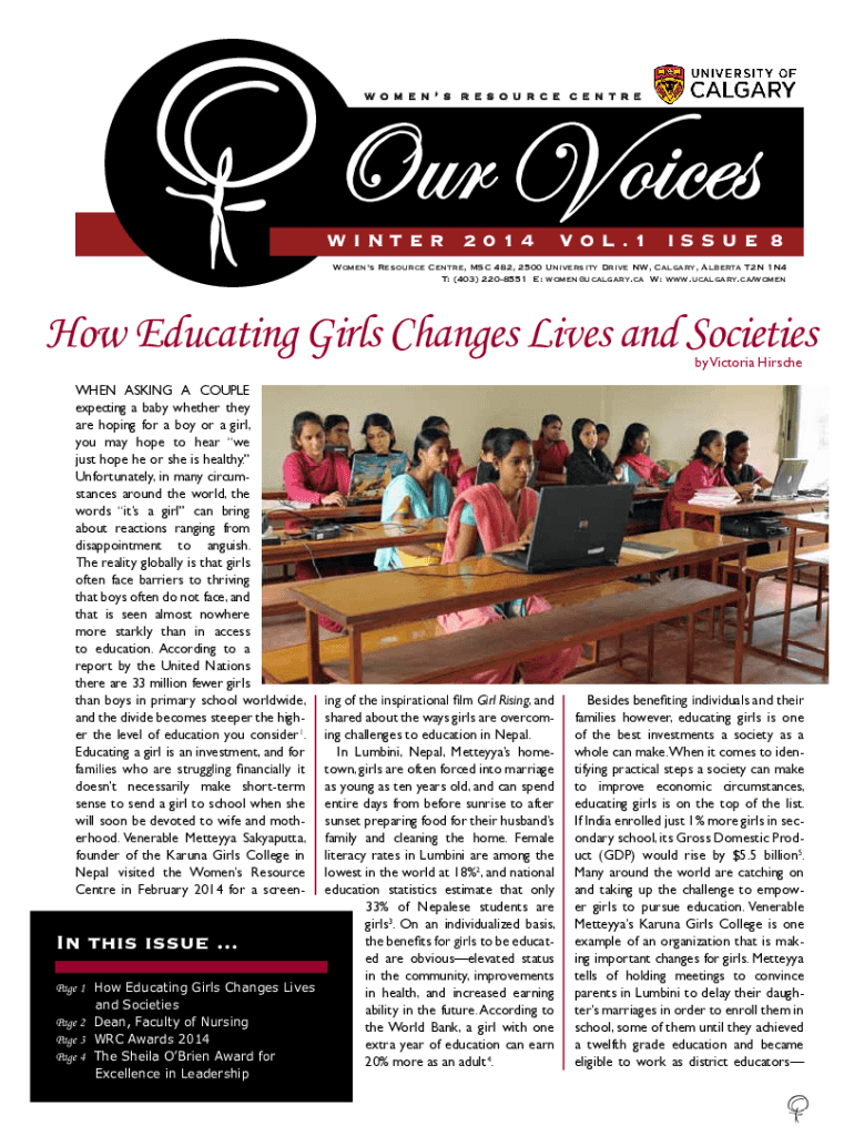 Women's resource centrewinter 2014VOL.1 ISSUE 8Women\'s Resource Center, MSC 482, 2500 University Drive NW, Calgary, Alberta T2N 1N4 T: (403) 2208551 E: women@ucalgary.ca W: www.ucalgary.ca/womenHow