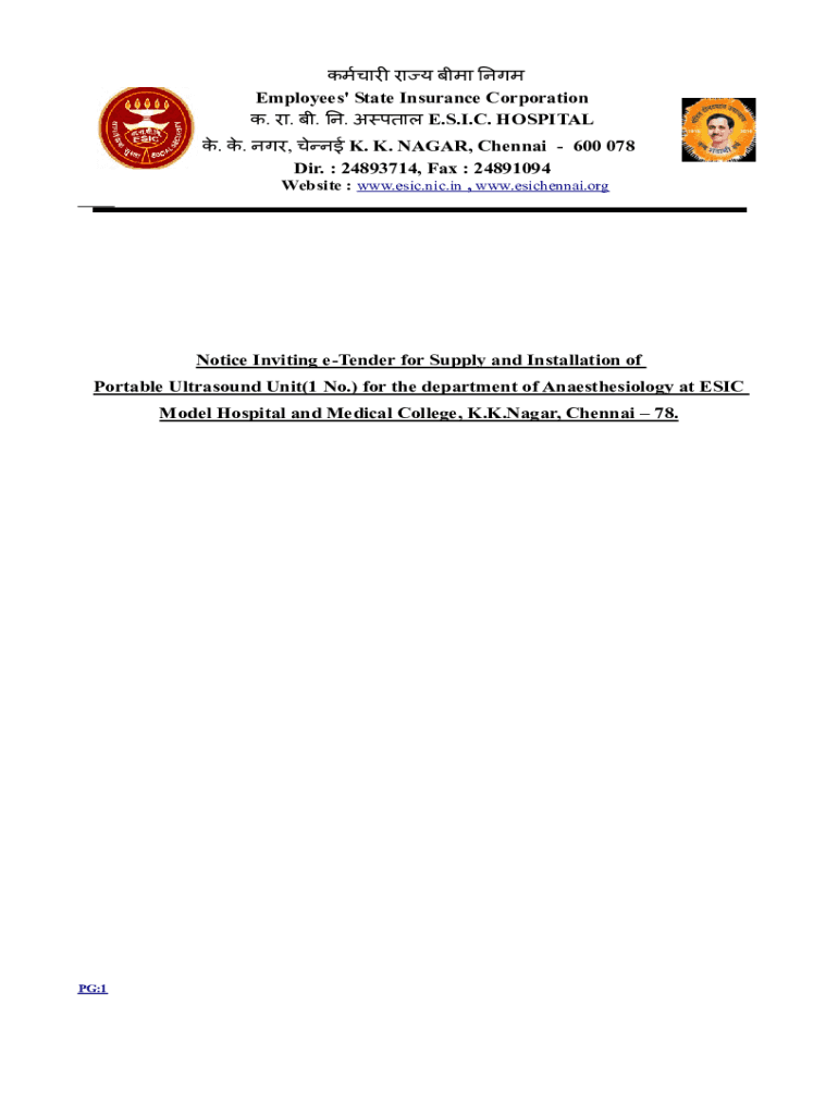 Employees\' State Insurance Corporation. . . . E.S.I.C. HOSPITAL. . , K. K. NAGAR, Chennai 600 078 Dir. 24893714, Fax : 24891094 Website : www.esic.nic.in, www.esichennai.orgNotice Inviting tender