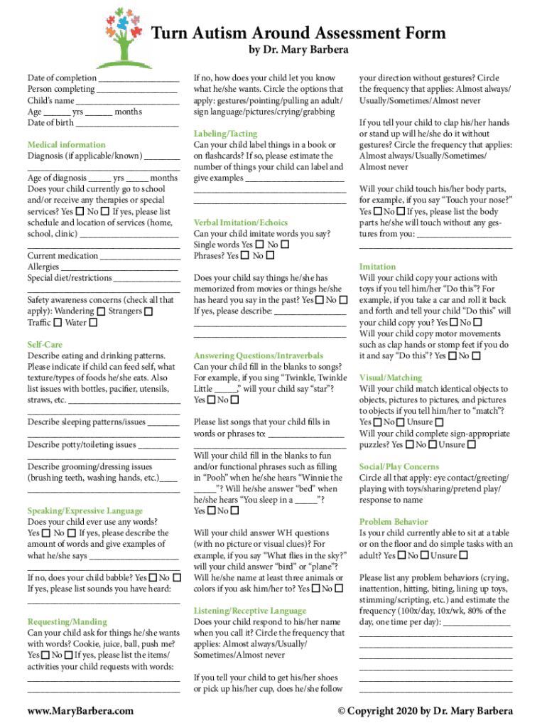 Gather all necessary information about the child's medical history, behavior patterns, and any previous therapies or treatments.