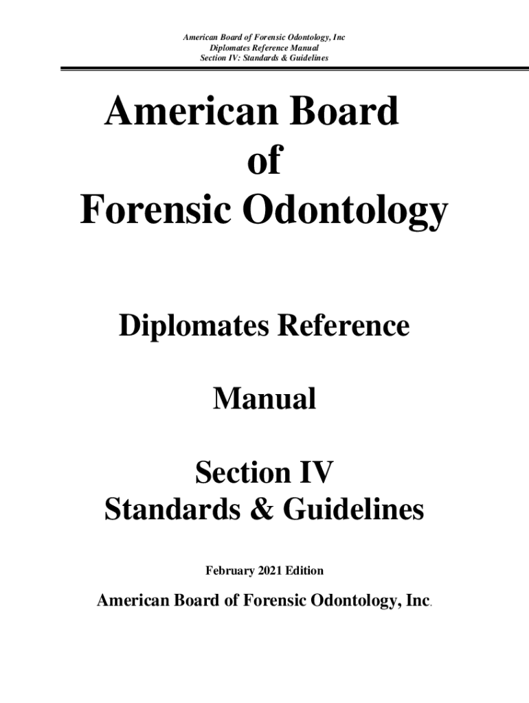 American Board of Forensic Ontology, Inc Diplomats Reference Manual Section IV: Standards & Guidelines American Board of Forensic Ontology Diplomats Reference Manual Section IV Standards & Guidelines