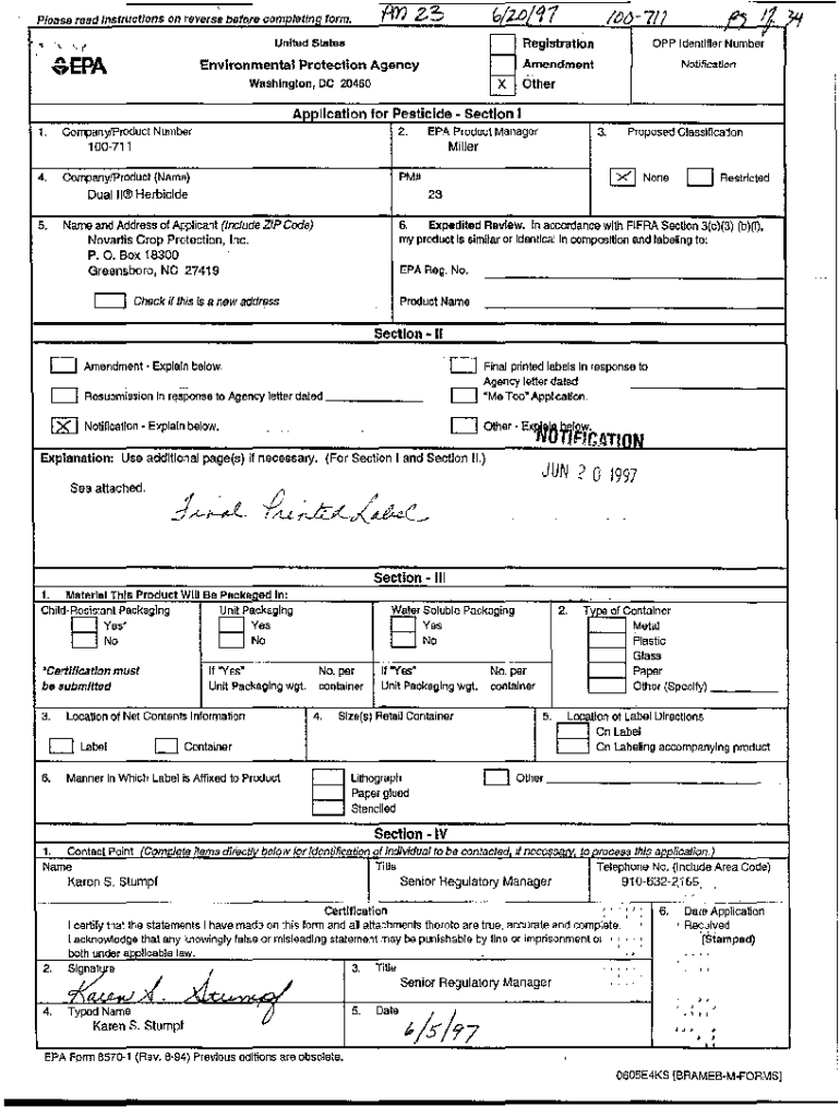 , 01;.0/111 m z\'Please read Instructions on reverse BAFO. Re completing form. \” United States’s, Environmental Protection Agency_\'\” O1,CompanylProduct Number 1007114. CompanylProduct (Name).3.