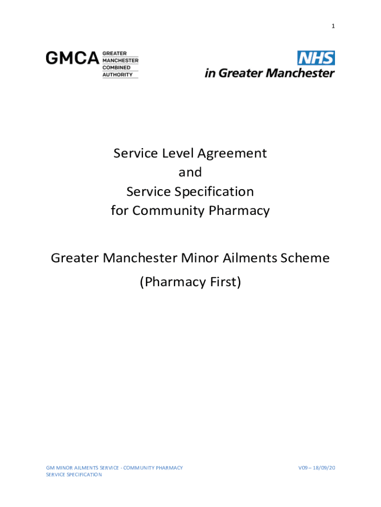 1Service Level Agreement and Service Specification for Community Pharmacy Greater Manchester Minor Ailments Scheme (Pharmacy First)GM MINOR AILMENTS SERVICE COMMUNITY PHARMACY SERVICE SPECIFICATIONV09