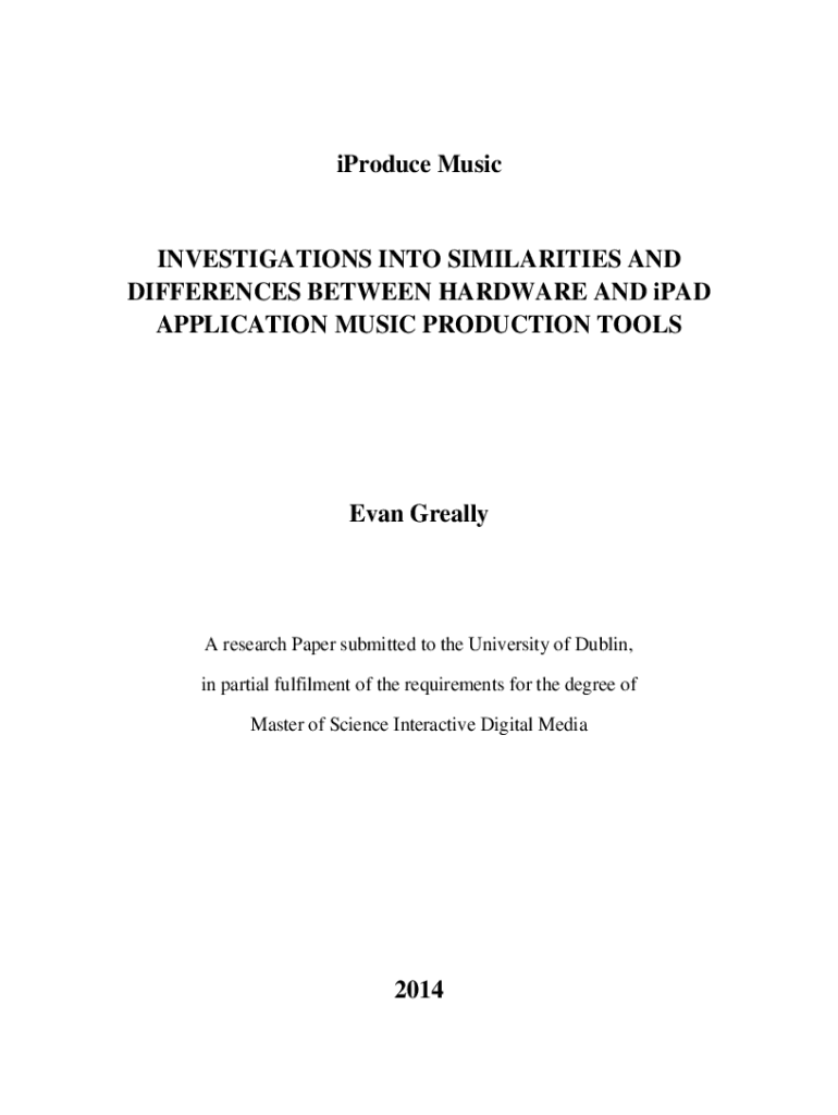 Produce MusicINVESTIGATIONS INTO SIMILARITIES AND DIFFERENCES BETWEEN HARDWARE AND iPad APPLICATION MUSIC PRODUCTION TOOLS Evan Greatly research Paper submitted to the University of Dublin, in partial