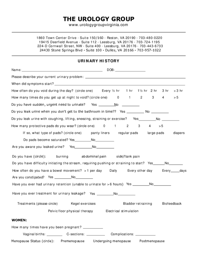 THE UROLOGY GROUP www.urologygroupvirginia.com1860 Town Center Drive Suite 150/160 Reston, VA 20190 7034800220 19415 Deerfield Avenue Suite 112 Leesburg, VA 20176 7037241195 224D Cornwall Street,