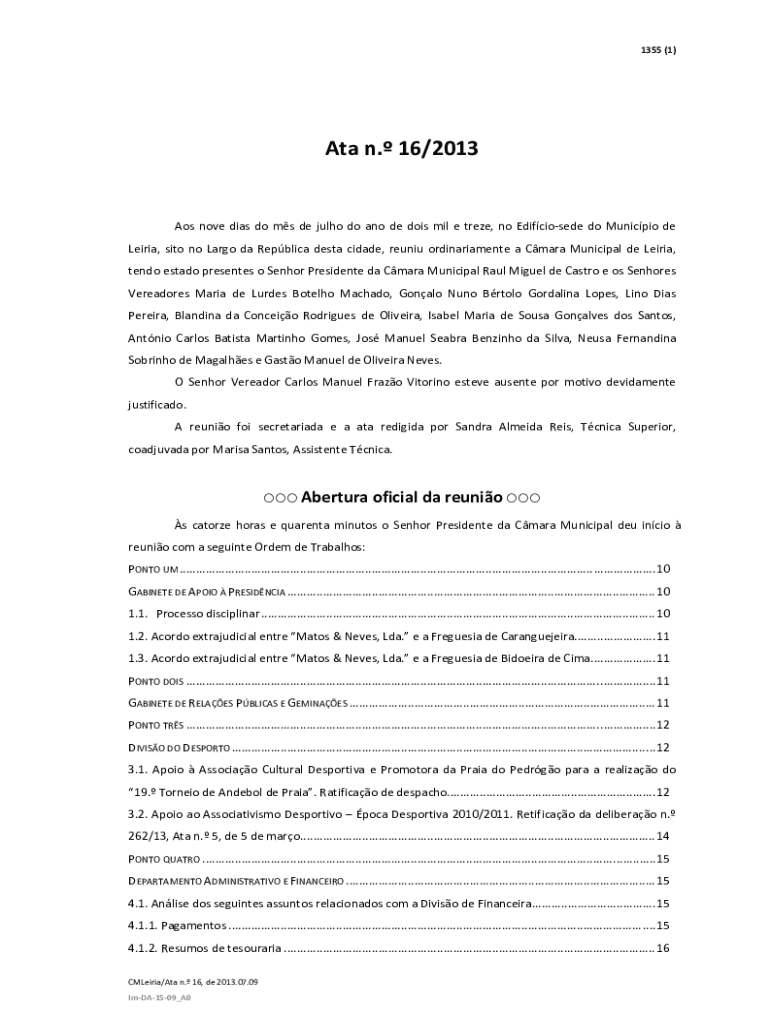 Obtenha o gratuito Aos nove dias do ms de julho do ano de dois mil e treze, no Edifciosede do Mun...