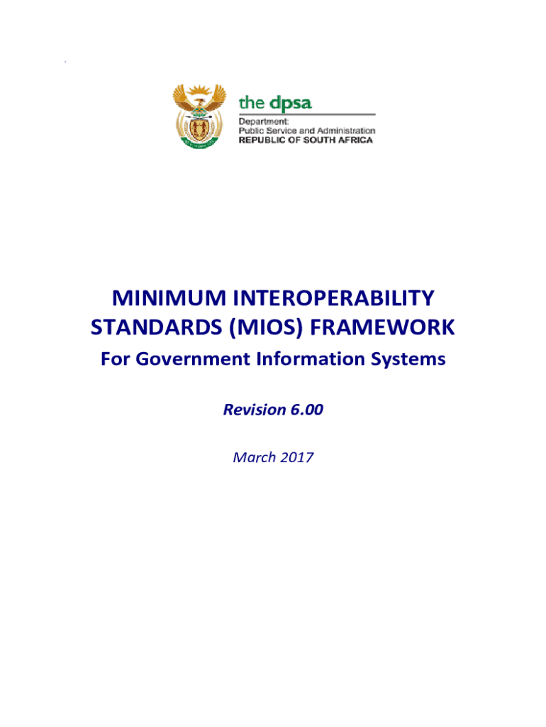 MINIMUM INTEROPERABILITY STANDARDS (MISS) FRAMEWORK For Government Information Systems Revision 6.00 March 2017APPROVAL I, the undersigned, In terms of the Public Service Act, 1994 (Proclamation 103