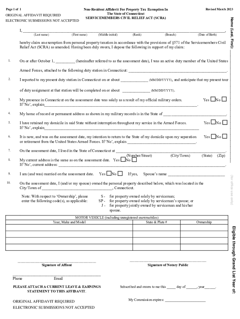 Page 1 of 1(Last name)(First name)(Middle initial)(Rank)(Branch)(Date of Birth)hereby claim an exemption from personal property taxation in accordance with the provisions of 571 of the Service members