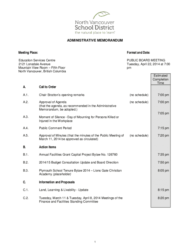 North Vancouver, British ColumbiaPUBLIC BOARD MEETING