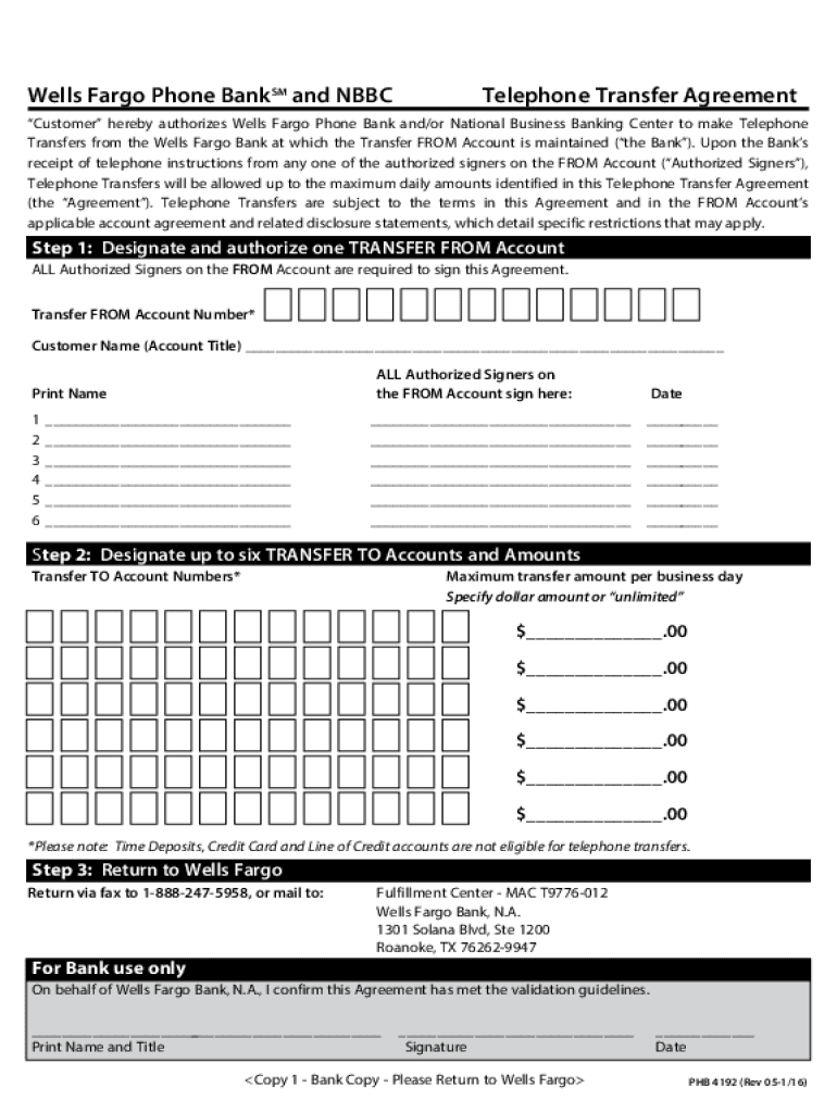 Get the free Wells Fargo Phone BankSM and NBBC Telephone Transfer Agreement. Wells Fargo Phone Ba...