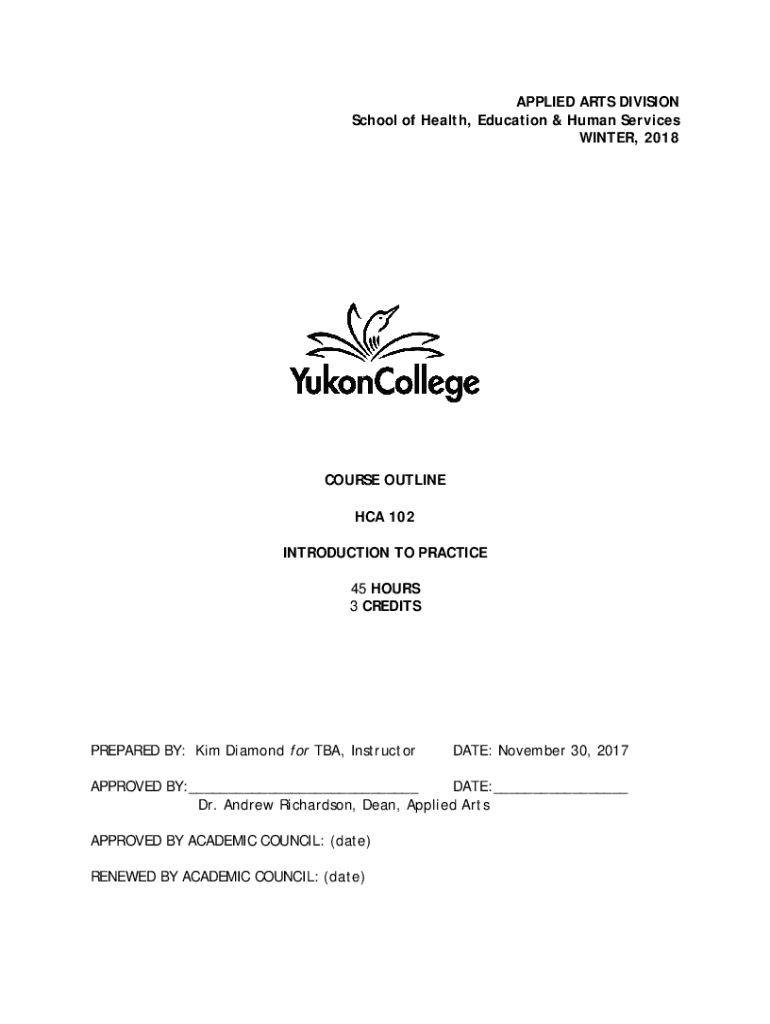 3 CREDITSPREPARED BY: Kim Diamond for TBA, InstructorDATE: November