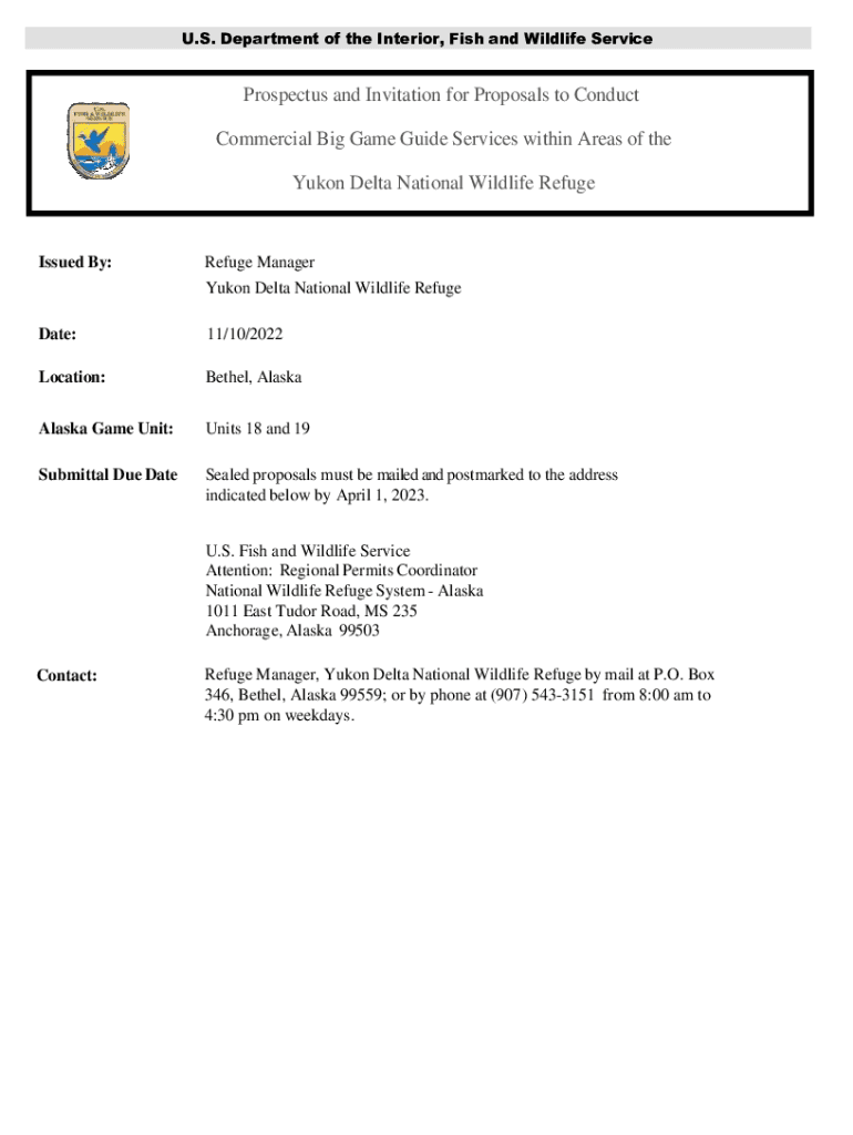 U.S. Department of the Interior, Fish and Wildlife ServiceProspectus and Invitation for Proposals to Conduct