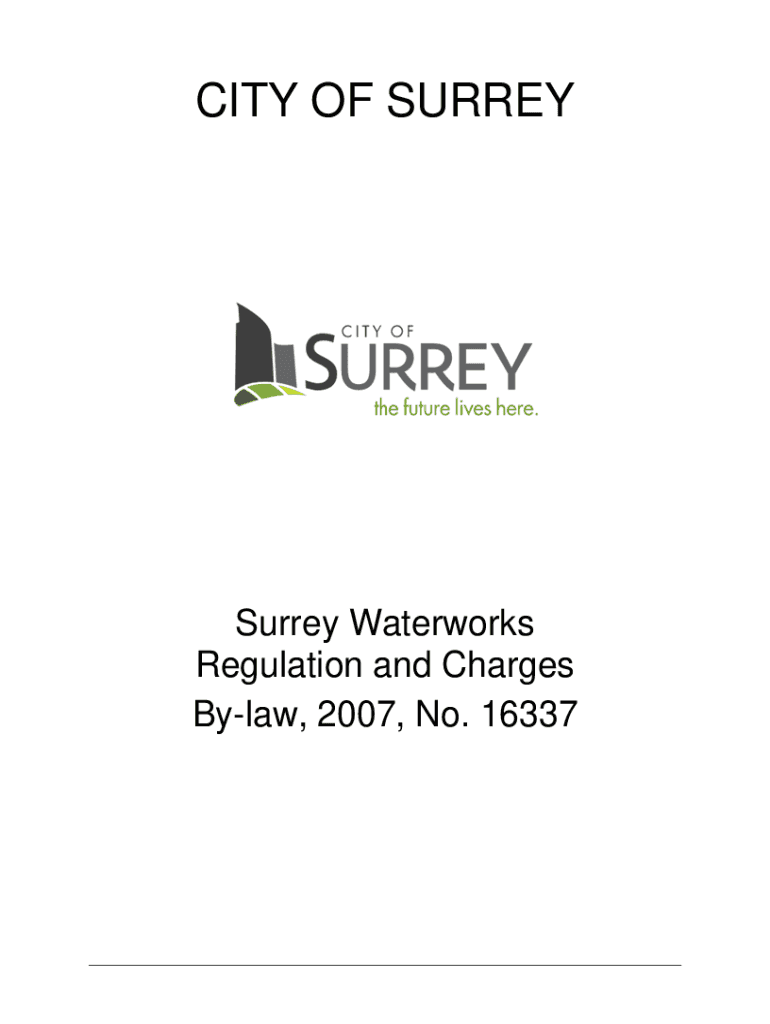 CITY OF SURREYSurrey Waterworks Regulation and Charges Bylaw, 2007, No. 16337TABLE OF CONTENTSUUPAGEPART 1 CITATION ...................................................................................................................................