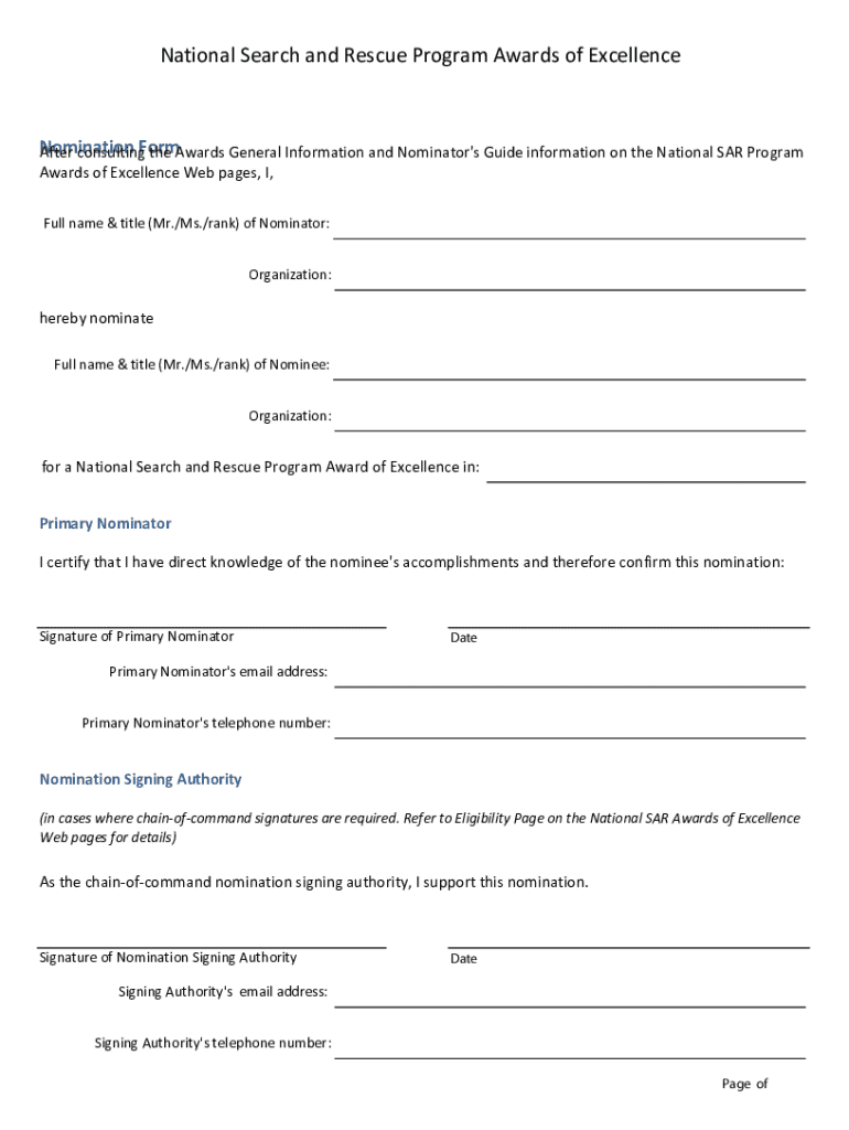 Get the free National Search and Rescue Program Awards of Excellence - Nomination Form