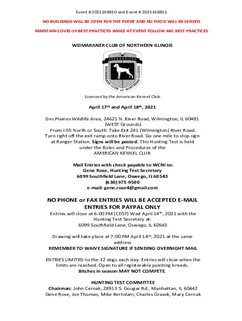 MAINTAIN COVID-19 BEST PRACTICES WHILE AT EVENT FOLLOW AKC BEST PRACTICESWEIMARANER CLUB