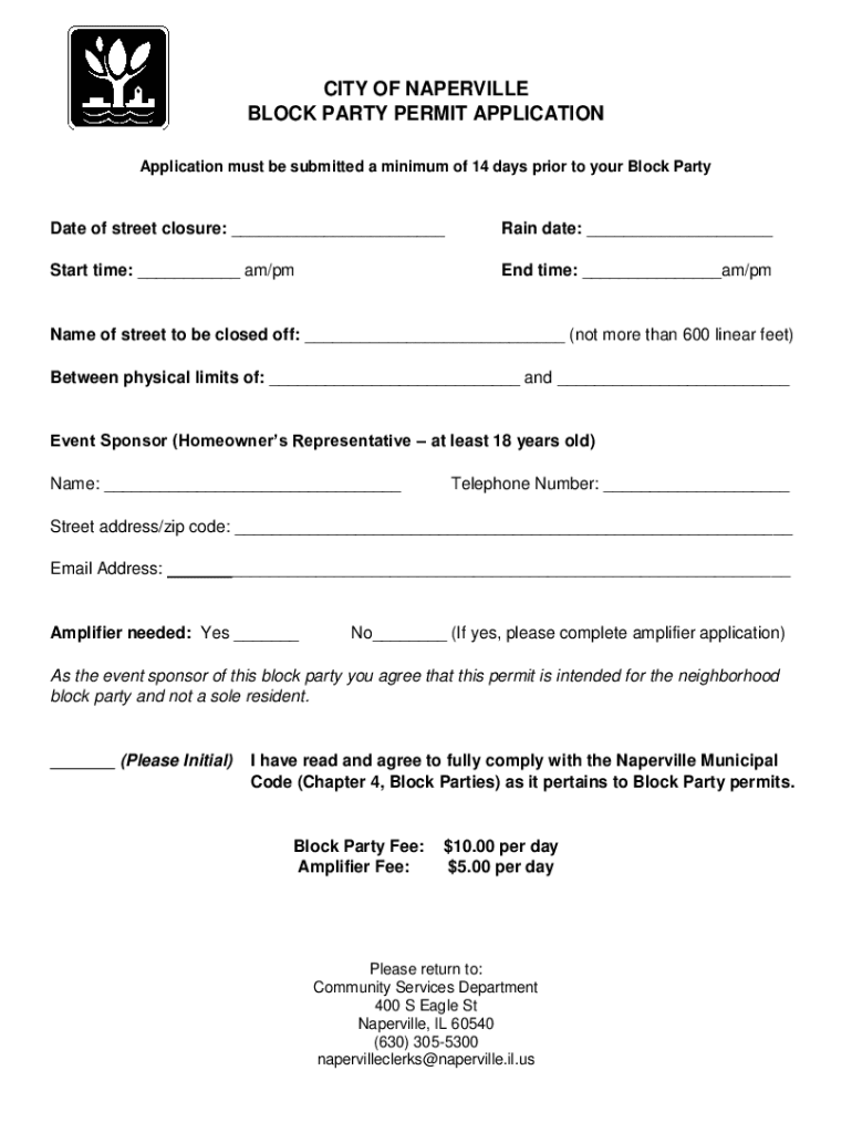 Get the free CITY OF NAPERVILLE BLOCK PARTY PERMIT APPLICATION