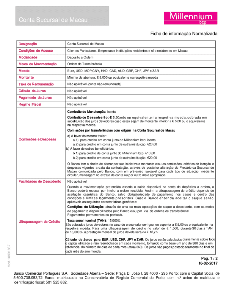 Obtenha o gratuito Ficha de Informao Normalizada Conta Sucursal de Macau
